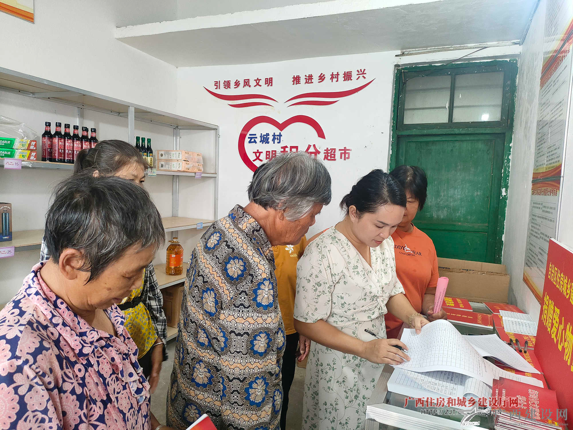 近年來(lái),自治區(qū)住房城鄉(xiāng)建設(shè)廳積極履行定點(diǎn)幫扶單位責(zé)任,指導(dǎo)上林縣幫扶村創(chuàng)辦“積分超市”,引領(lǐng)鄉(xiāng)村文明建設(shè),助力鄉(xiāng)村振興。云城村為“積分超市”制定了詳細(xì)的積分評(píng)定標(biāo)準(zhǔn)和兌換規(guī)則,將村民的日常行為轉(zhuǎn)化為可以量化、可以評(píng)價(jià)的數(shù)據(jù)指標(biāo)。該村“積分超市”按照愛(ài)黨愛(ài)國(guó)、興業(yè)致富、移風(fēng)易俗、鄉(xiāng)村建設(shè)、人居環(huán)境、打擊違法行為以及其他等7個(gè)方面累計(jì)積分,村民以實(shí)際行動(dòng)獲取積分,用積分免費(fèi)兌換醬油、洗衣粉、沐浴露等生活物品。“積分超市”的物資來(lái)源之一是由后盾單位自治區(qū)住房城鄉(xiāng)建設(shè)廳和愛(ài)心企業(yè)捐贈(zèng)。