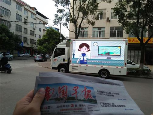 圖2:欽州市通過移動LED宣傳車播放住房保障宣傳短片。