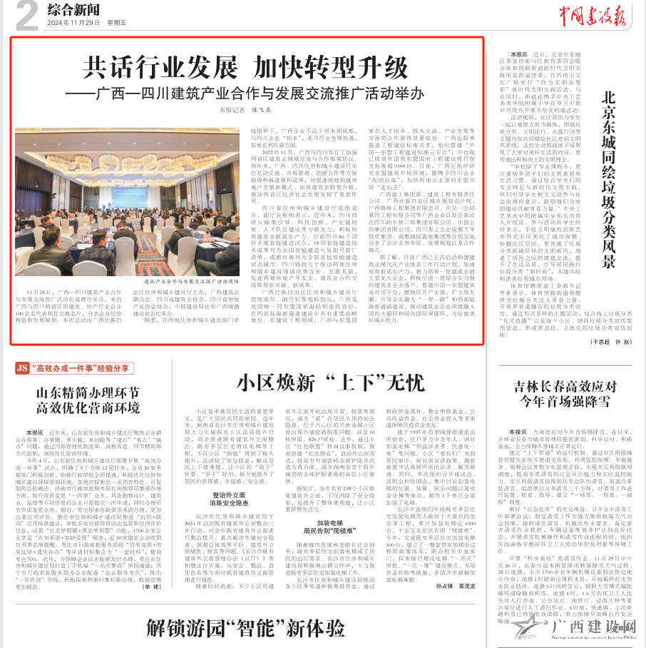 11月28日,廣西-四川建筑產(chǎn)業(yè)合作與發(fā)展交流推廣活動在四川成都舉辦,兩地企業(yè)共尋行業(yè)發(fā)展機遇,探索互利共贏空間。
