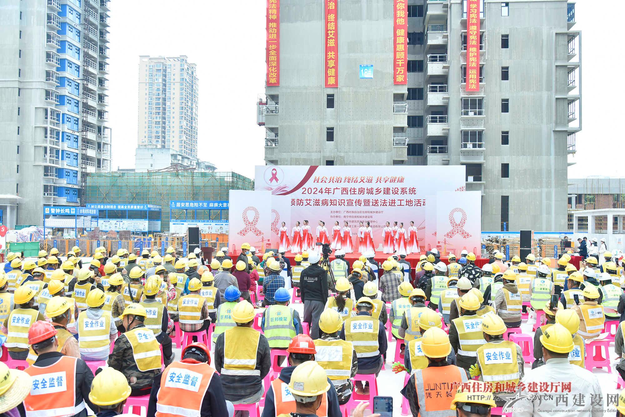 2024年廣西住房城鄉(xiāng)建設(shè)系統(tǒng)預(yù)防艾滋病知識宣傳暨送法進(jìn)工地活動現(xiàn)場