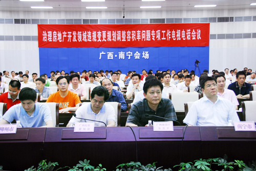 住房和城鄉(xiāng)建設(shè)部部長姜偉新主持會(huì)議。住房和城鄉(xiāng)建設(shè)部副部長仇保興對開展房地產(chǎn)開發(fā)領(lǐng)域違規(guī)變更規(guī)劃調(diào)整容積率專項(xiàng)治理工作作了全面部署,并對工作的重點(diǎn)、時(shí)間和方法提出了要求。監(jiān)察部副部長郝明金要求要充分認(rèn)識(shí)做好專項(xiàng)治理工作的重要性和緊迫性,并強(qiáng)調(diào)全國監(jiān)察部門要充分發(fā)揮職能作用,配合住房城鄉(xiāng)建設(shè)部門,共同遏制房地產(chǎn)開發(fā)領(lǐng)域腐敗問題易發(fā)多發(fā)勢頭。