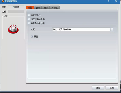 操作方法:(1)U盤在線更新安全等級信息、密碼,也是十分方便,在您勾選啟用安全后(步驟如上文所述),在界面中放置一顆功能按鈕,選擇“安全:匯入用戶賬戶”,如下圖: